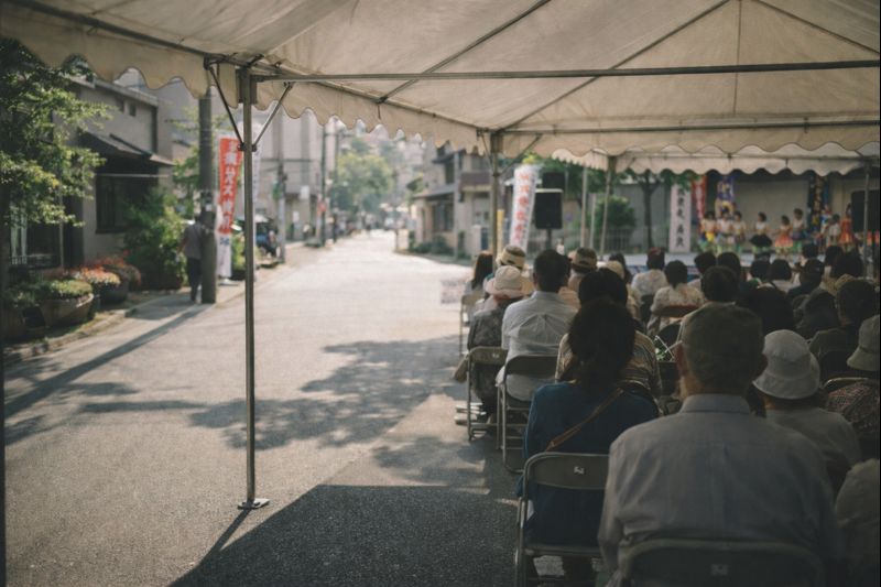 普段は駐車場のスペースにテントが張られ、簡易舞台と客席がつくられます。観客は地元の方を中心に200人ほど。アットホームな雰囲気で、肩ひじ張らずに楽しめました。