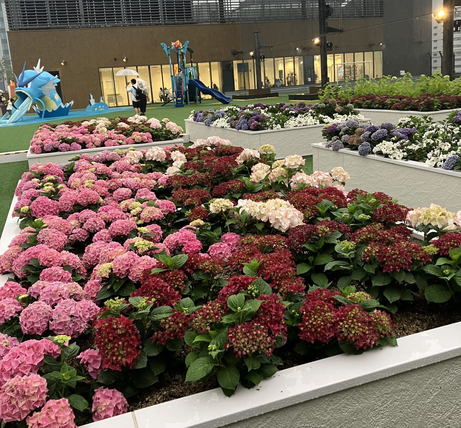 アジサイが色とりどりに咲いていて、とてもきれいです。