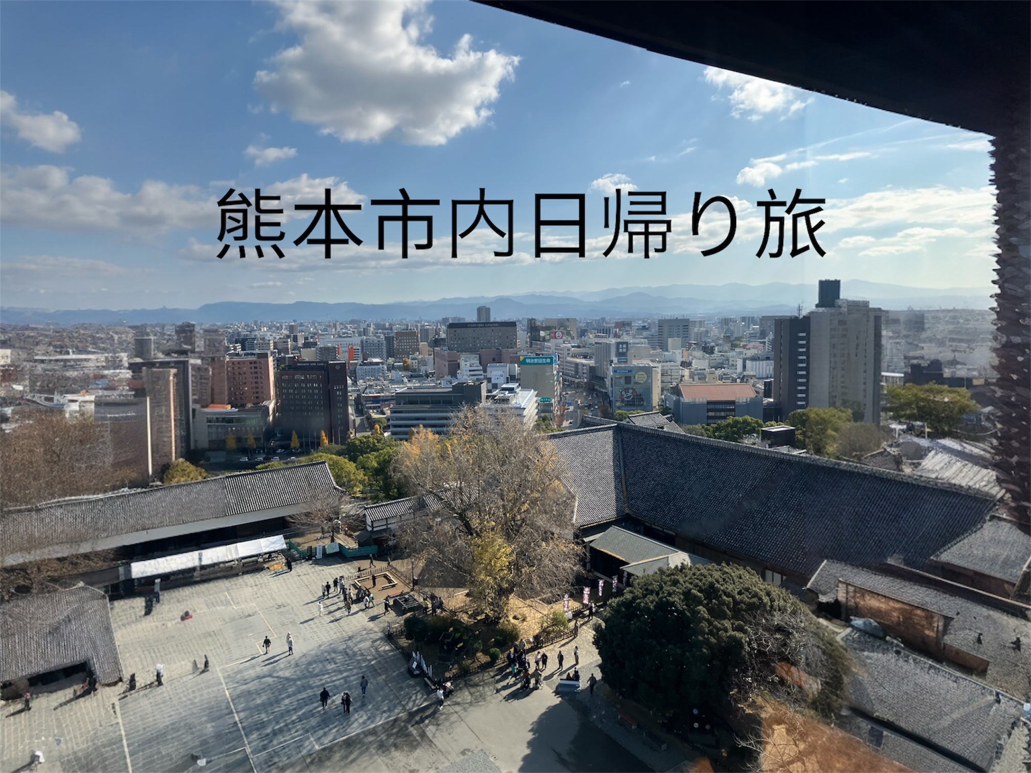 アイキャッチに使っている写真は、天守閣から見た熊本市内の眺めです。