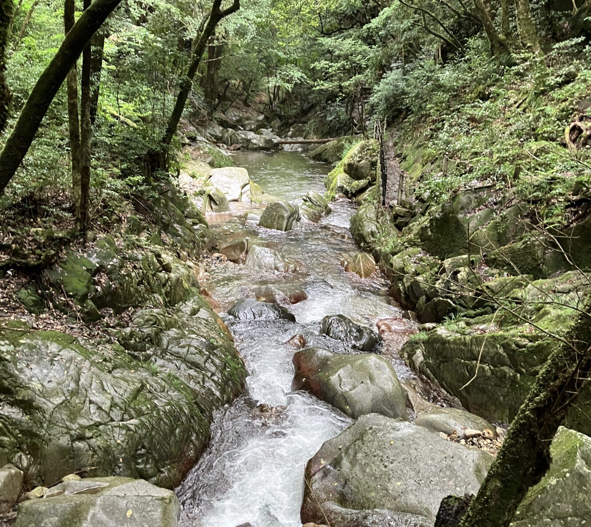 野河内峡は薄暗く涼しいので、日差しを避けたい私にとって過ごしやすく、きれいな水の流れを横目に気持ちよく歩けました。