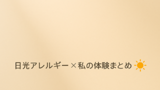 日光アレルギー 🌞私の体験まとめ|39歳で発症してから現在までの日光アレルギー記録 39歳で発症した日光アレルギーの症状や経過、仕事や外出の工夫、愛用日焼け止めやスキンケアなど、50代までの体験をまとめました。同じ悩みを持つ方に役立つ情報を紹介しています。 2025.09.27 日光アレルギー