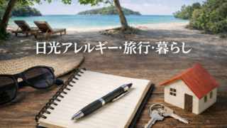 日光アレルギー 📝このブログについて 50代後半シニア世代の私が、日光アレルギーとの暮らしを軸に、夫婦の旅や断捨離、20年住んだ家を手放した自宅売却の記録までを実体験で綴るブログです。 2025.05.09 日光アレルギー